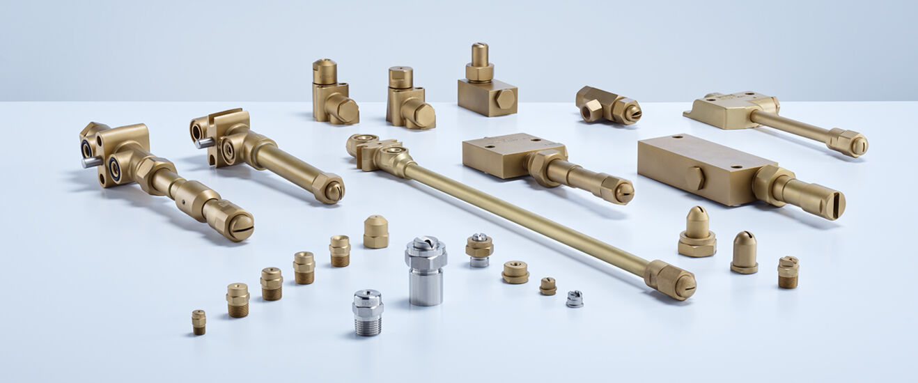 - نازلهای پاشش و افشانک ها: گروه نوین فرساخت آسین نازلهای پاشش با طیف گستردهای از اندازهها، شکلها و مواد اولیه مختلف عرضه میکند.برای نمونه میتوان از اسپری نازل های خطی یا کارواشی، نازل های مخروطی، اتمایزر ها و… نام برد. این نازلها بهعنوان بخشهای مهم در فرآیندهای صنعتی مختلف از جمله پالایشگاهها، سیستمهای تهویه، سیستمهای آبیاری، سیستمهای خنککننده و … مورد استفاده قرار میگیرند.